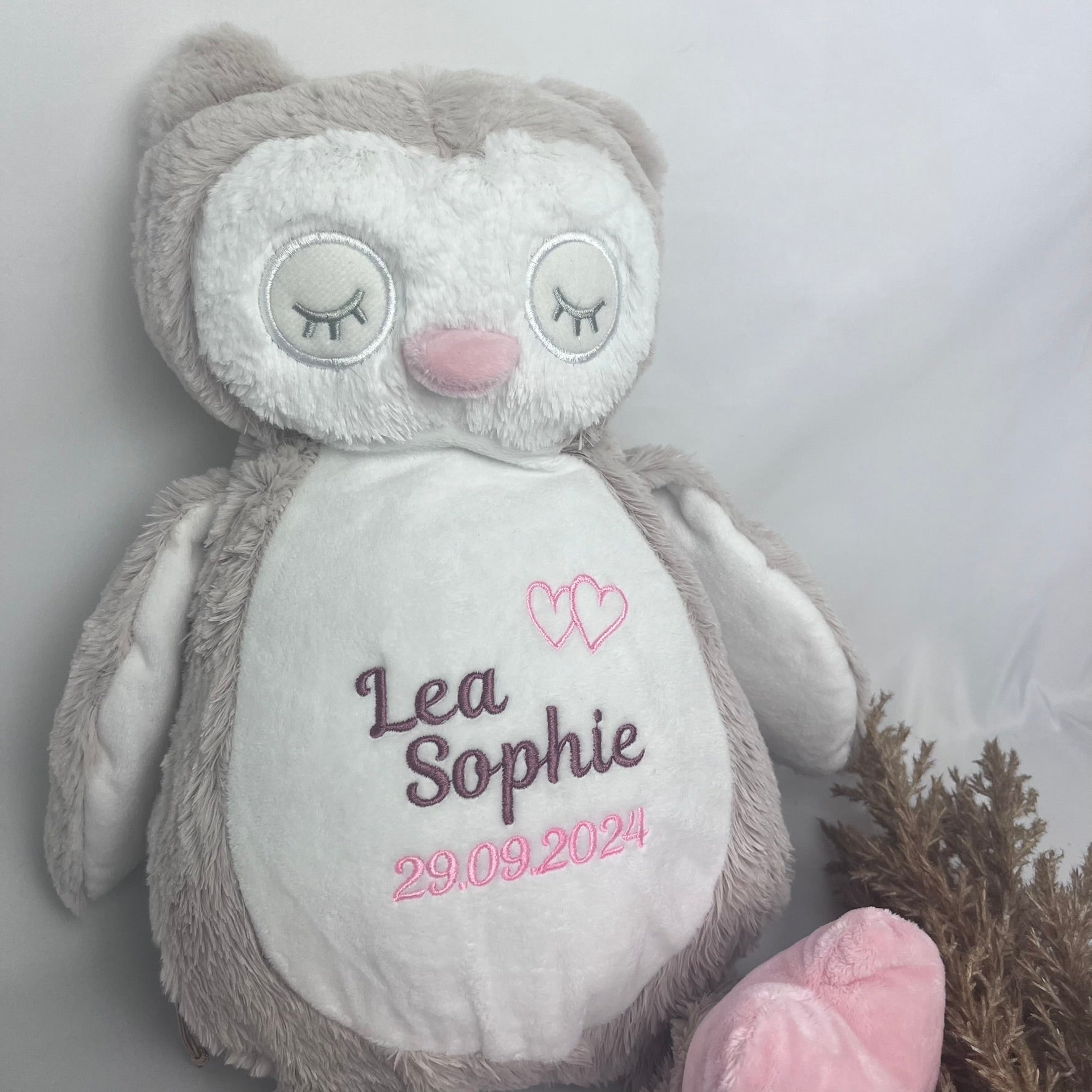 Weiches und kuscheliges Plüschtier, personalisierbar mit Name und Geburtsdatum. Ideales Geschenk zur Geburt.