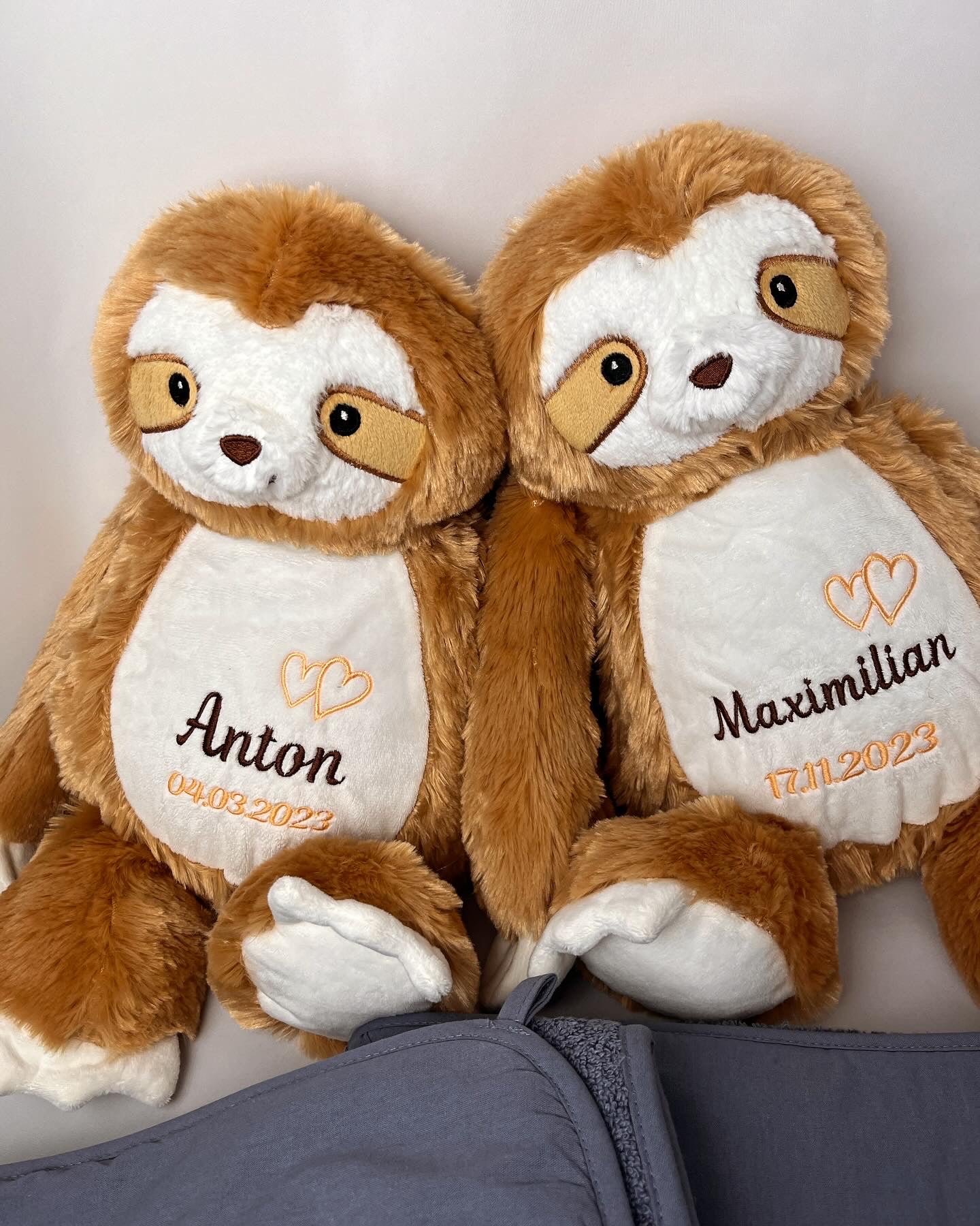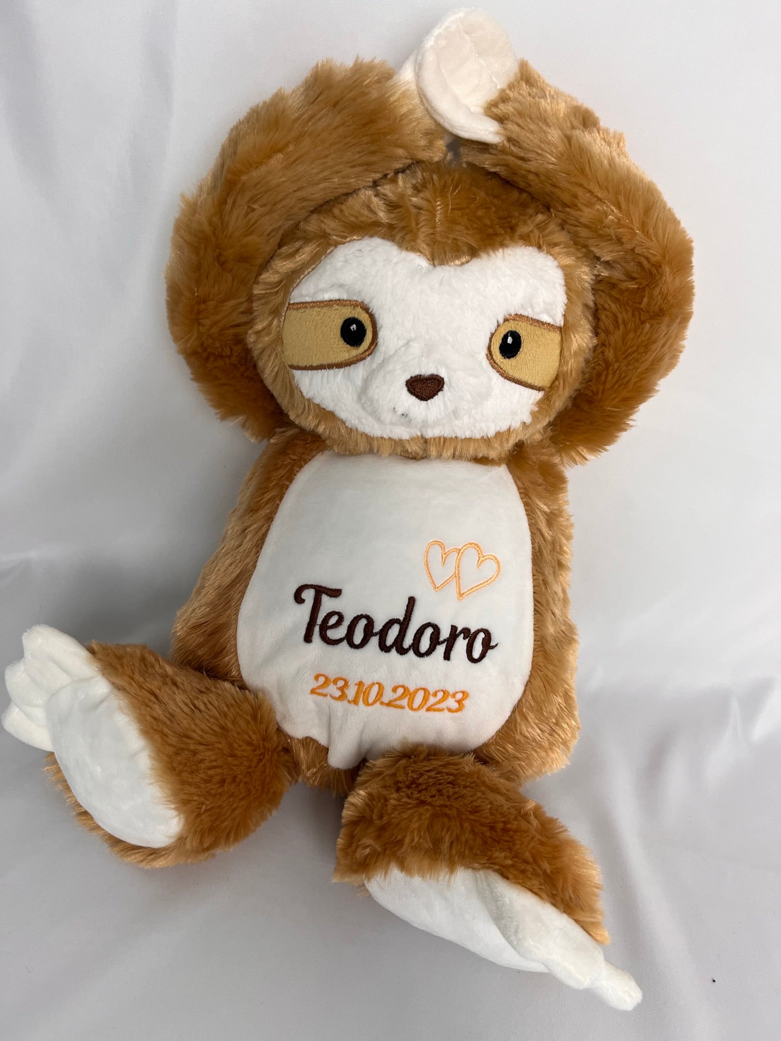 Weiches und kuscheliges Plüschtier, personalisierbar mit Name und Geburtsdatum. Ideales Geschenk zur Geburt.